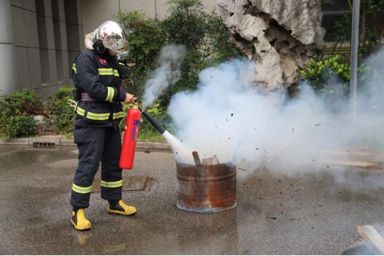 高新區(qū)消防中隊(duì)同志講解并演示滅火器使用方法