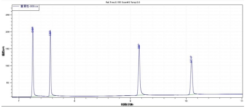 圖1. 4種鄰苯二甲酸酯類化合物標準物質(zhì)的參考色譜圖