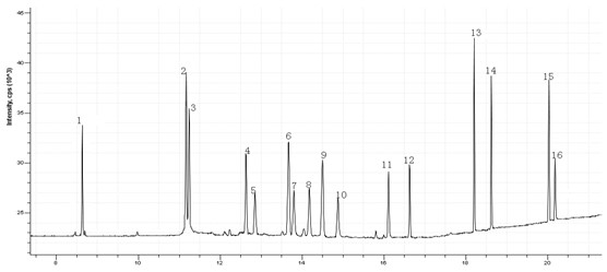 柱箱升溫程序:50℃(2min)25℃/min 200℃(7min)20 ℃/min 280℃(5min)